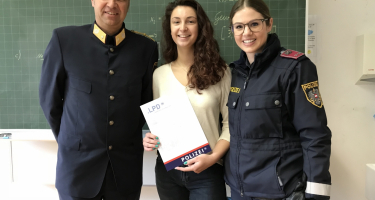 Wyonna Gabriel (4ca) bekam am 17.05.18 von der Polizei einen Preis für den Gewinn beim Ideenwettbewerb "Gemeinsam. Sicher an deiner Schule" in der Kategorie 9. Schulstufe bis Matura. Herzlichen Glückwunsch!