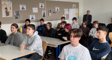 Bestens vorbereitet kam unser Gast zur Begegnung mit Schüler*innen unserer Schule. Er erinnerte an seine eigene Schulzeit, brachte Bilder von zwei Schülerzeitungen und auch von seiner Matura mit.