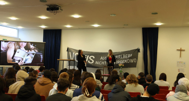Reinhard Steurer solidarisiert sich mit den „Klimaklebern“ und wurde dadurch auch bei uns bekannt. Sein Aufenthalt in Vorarlberg war eine gute Gelegenheit, ihn in seine ehemalige Schule einzuladen.