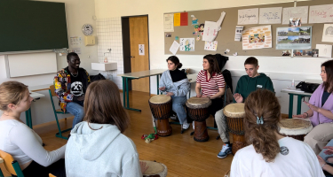 Letzten Mittwoch, den 3.5. durften wir, die 2da, einen besonderen Trommelkurs mit Papa Sene erleben. Papa Sene kommt aus Senegal und lebt seit 5 Jahren in Österreich und kann nicht nur großartig trommeln, er produziert die Trommeln selber in drei Tagen aus einem Baumstamm und Ziegenleder und kann wunderbar über die senegalesische Kultur erzählen.