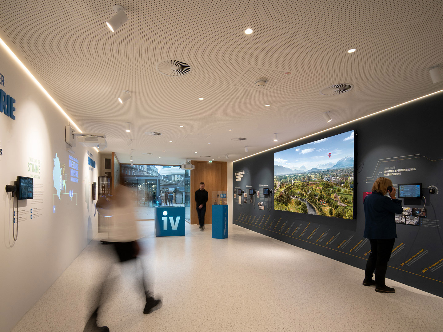 Zu Beginn erhielten die Schüler:innen von Frau Gabriele Gruber, Assistentin der Geschäftsführung, einen Einblick in die Aufgaben und Tätigkeiten der Industriellenvereinigung Vorarlberg. Dabei wurden zentrale Themen wie die Rolle der IV als Interessenvertretung, ihre Bedeutung für den Wirtschaftsstandort sowie aktuelle Herausforderungen und Zukunftsfragen anschaulich erklärt. Das „Haus der Zukunft“ zeigt in den Räumlichkeiten eindrucksvoll die Geschichte der Industrie in Vorarlberg mittels des Einsatzes modernster Technologie und der audiovisuellen Inszenierung.