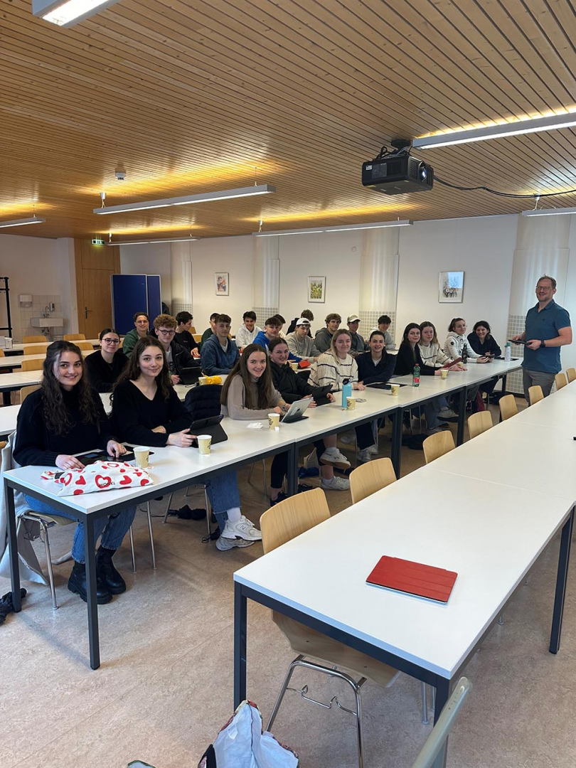 Nicht weniger als 60 % der Studenten:innen an der Universität Liechtenstein stammen aus Vorarlberger Gemeinden. Entsprechend naheliegend war auch ein Besuch der 4ea (Sportmanagement) im Fach Wirtschaftsinformatik in Vaduz. Nach wie immer perfekter Organisation durch ass. iur. Friederike Metzler-Koll standen zwei Schwerpunkte auf dem Programm: eine Führung durch die gesamte Universität mit Besuch diverser Hörsäle und weiterer Infrastruktureinrichtungen sowie der Besuch eines Workshops zur brandaktuellen Thematik der Künstlichen Intelligenz.