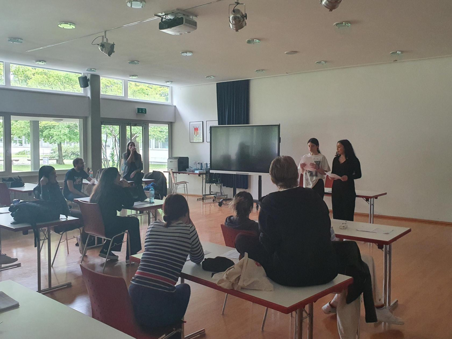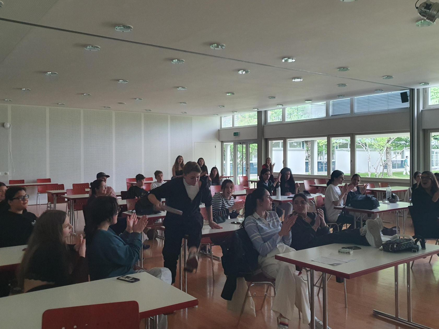 Auch der vierte Jahrgang der Kulturakademie übte sich erfolgreich am Freitag, den 13.5. in einem Dichterwettstreit. Die 4DA lernte von Ivica Mijajlovic, dem im süddeutschen Raum bekannten Slammer und „Superheld im Privatleben“, wie er sich gerne selber bezeichnet, wie gute Texte entstehen, dann auf die Bühne gebracht und eindrucksvoll performt werden. Die selbst verfassten Texte wurden im Mehrzwecksaal vor der ersten Kulturakademie vorgelesen und von tosendem Applaus begleitet. Auch dieser Workshop wurde vom Energieinstitut gesponsert, vielen Dank für diese Unterstützung an dieser Stelle an Tamara Rohner, welche auch einen Teil des Workshops besuchte.