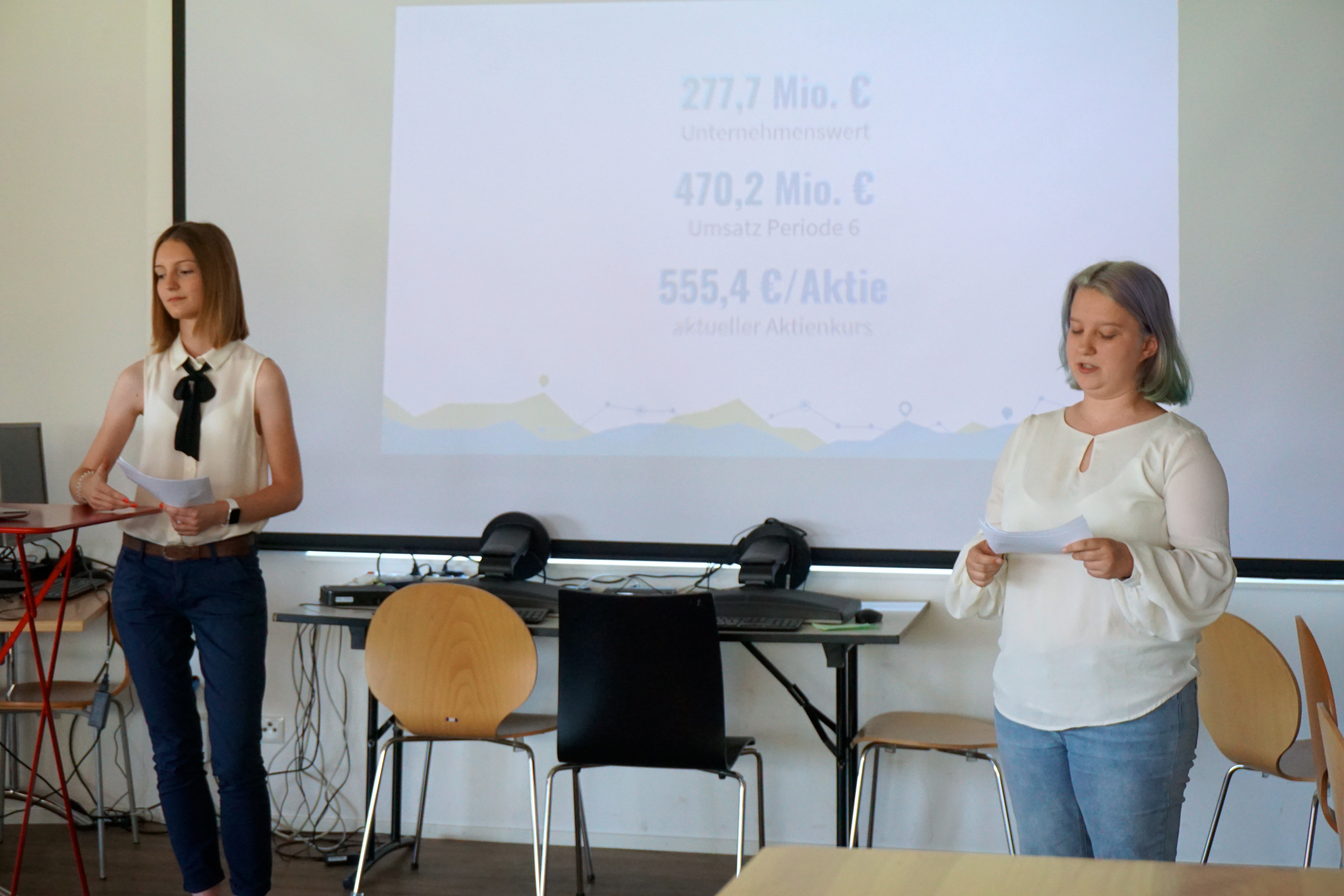 Am Vormittag wurden die letzten zwei Perioden gespielt. Nach dem Mittagessen ging es dann daran die Präsentationen fertigzustellen. Um 14:00 Uhr war es dann soweit, die Schüler präsentierten der Jury ihre Ergebnisse, Erfolge bzw. Misserfolge.