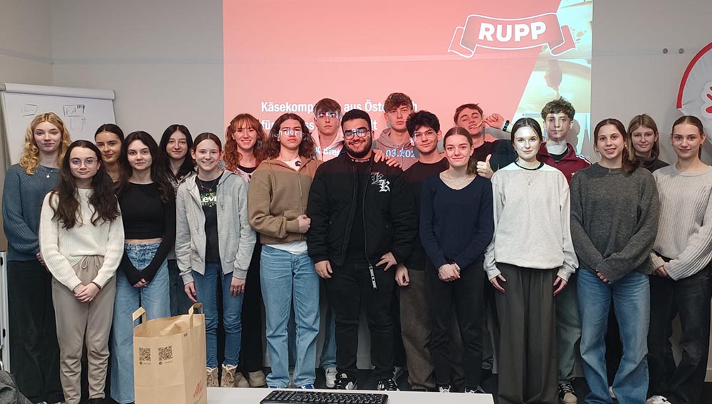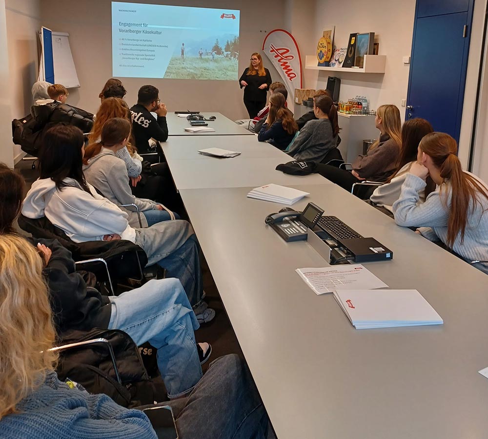Am 13. März 2024 machten wir, die 3aa, eine Exkursion zum Unternehmen Rupp Käse in Hörbranz. Zu Beginn wurden wir von Frau Anastasia Ivic, Mitarbeiterin im Personalbereich bei Rupp, freundlich begrüßt und erhielten im Rahmen eines kurzen Vortrags einen interessanten Einblick in das bekannte Vorarlberger Unternehmen. Die Fragen, die wir vorbereitet hatten bzw. die sich im Laufe der Ausführungen ergeben haben, wurden ausführlich beantwortet. Auch über etwaige Kooperationen in Zusammenhang mit Diplomarbeiten wurde gesprochen.
