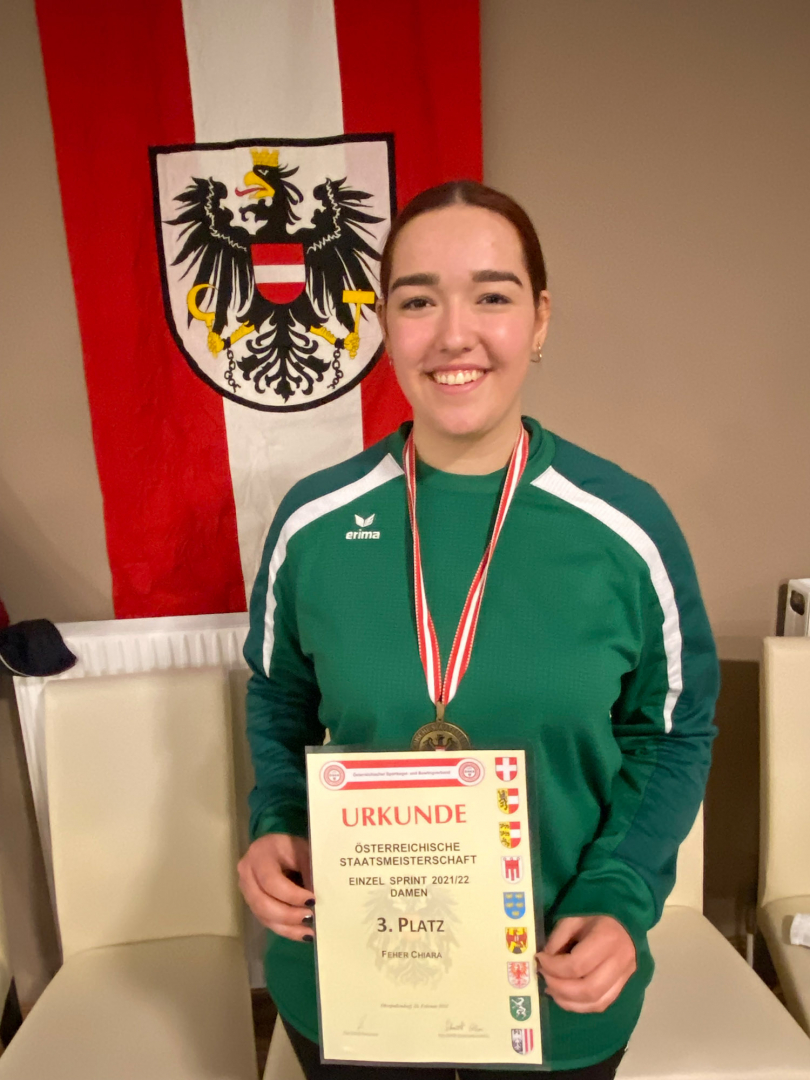 In dieser Saison konnte ich mir zusammen mit meinem Papa den Landesmeistertitel in der Allgemeinen Klasse im Tandembewerb sichern, woraufhin ich mich erstmals österreichweit mit den Erwachsenen messen durfte. Dabei den 3. Platz zu belegen habe ich nicht erwartet. Dieser Erfolg hat mir wieder eine zusätzliche Motivation für das harte Training gegeben.“ Chiara Feher, 1da